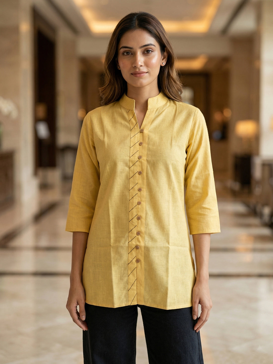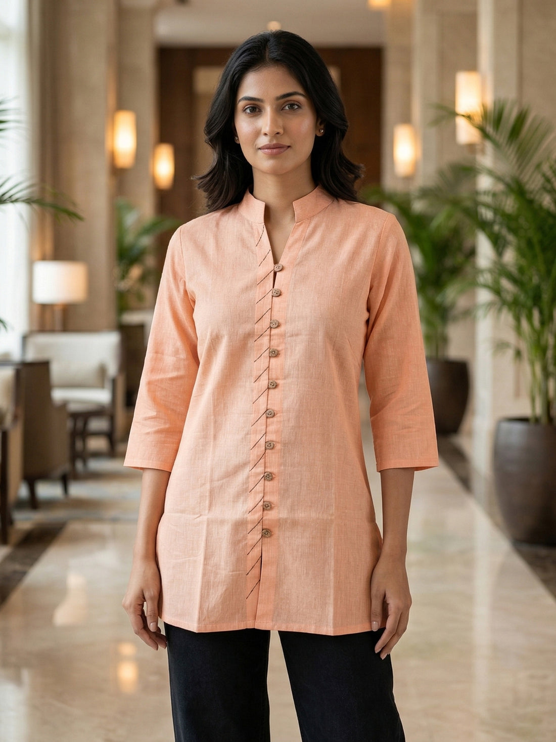 Women’s Hand block Printed Cotton Short Kurti Elevate your everyday wardrobe with this effortlessly elegant...
