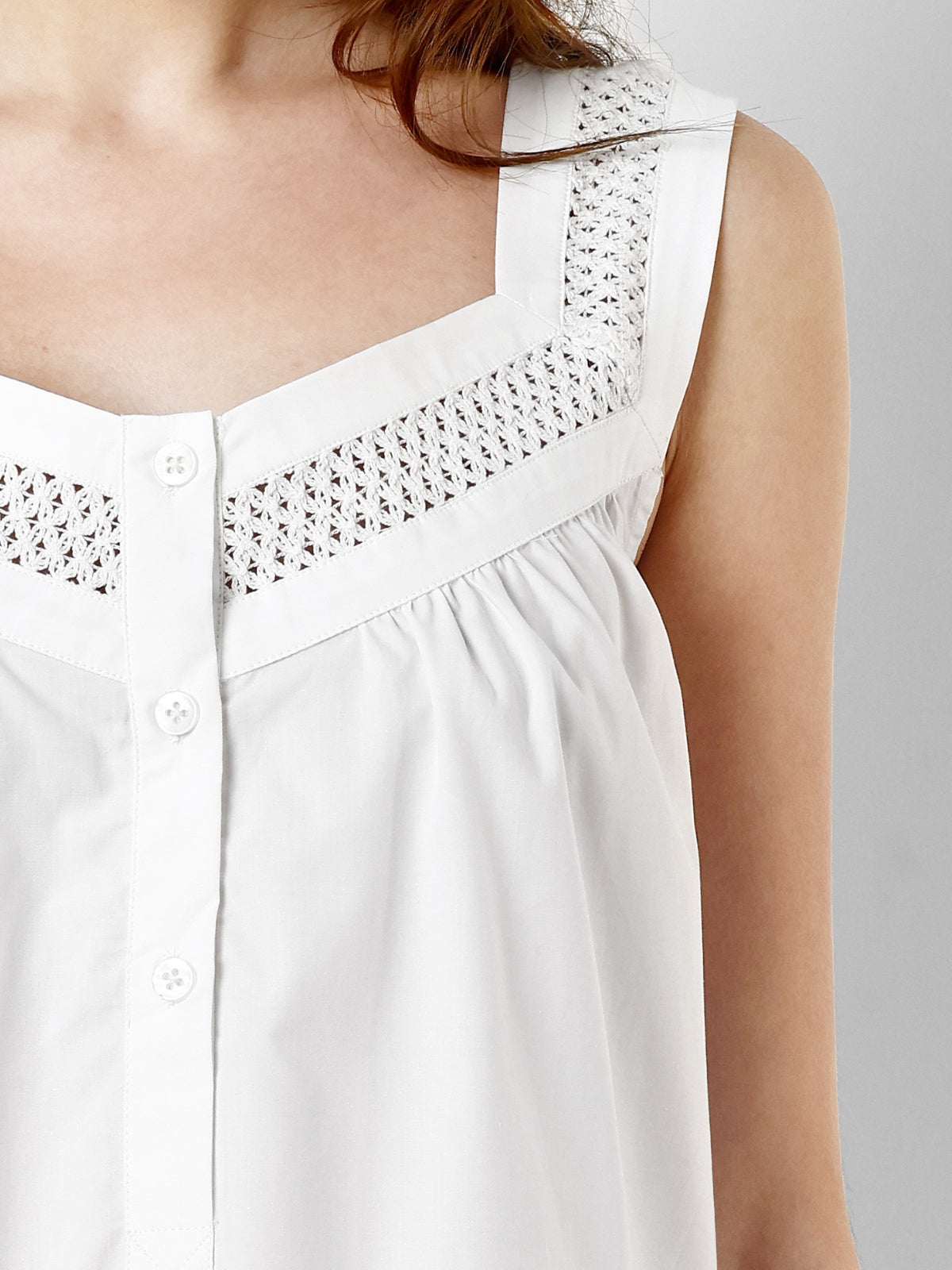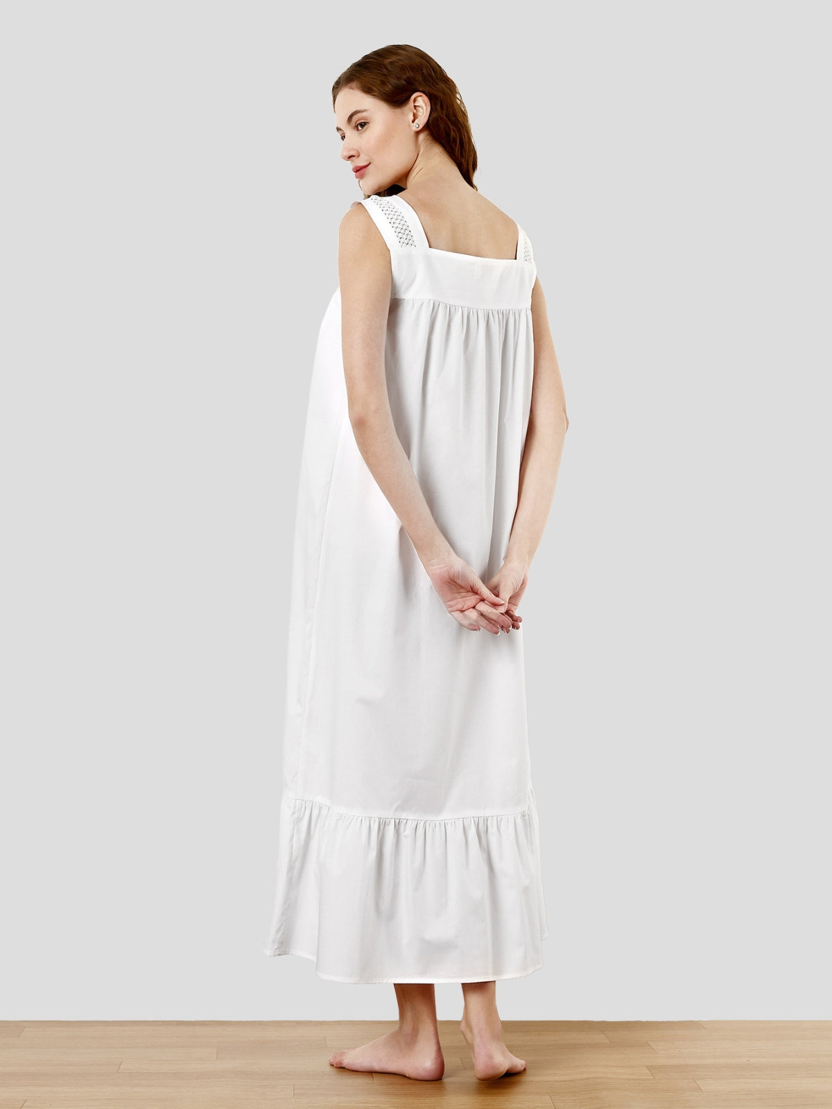 White Cotton Lace trim along Straps and Chest, SELENE is our most elegant long length nightgown. Finest Egyptian Cotton is being used to give soft feel.