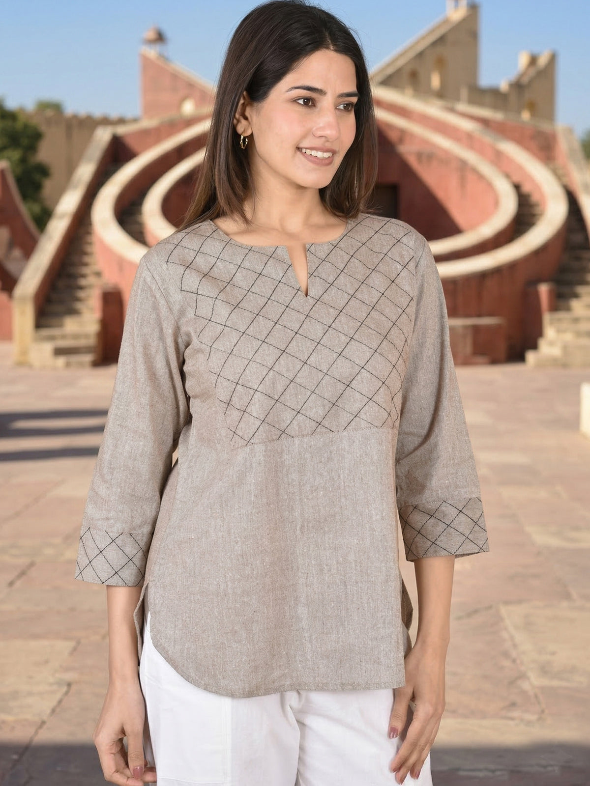 Discover timeless elegance with our Handloom Cotton Yoke Top for women, crafted from premium handwoven cotton fabric that offers unmatched comfort and breathability. Designed with a beautifully detailed yoke, this top blends traditional craftsmanship with modern style, making it perfect for casual outings, office wear, and everyday fashion. Its lightweight texture and relaxed fit ensure all-day ease, while the versatile design pairs effortlessly with jeans, trousers, or ethnic bottoms. Elevate your wardrobe with this eco-friendly, stylish, and comfortable handloom cotton top that reflects both grace and sustainability.