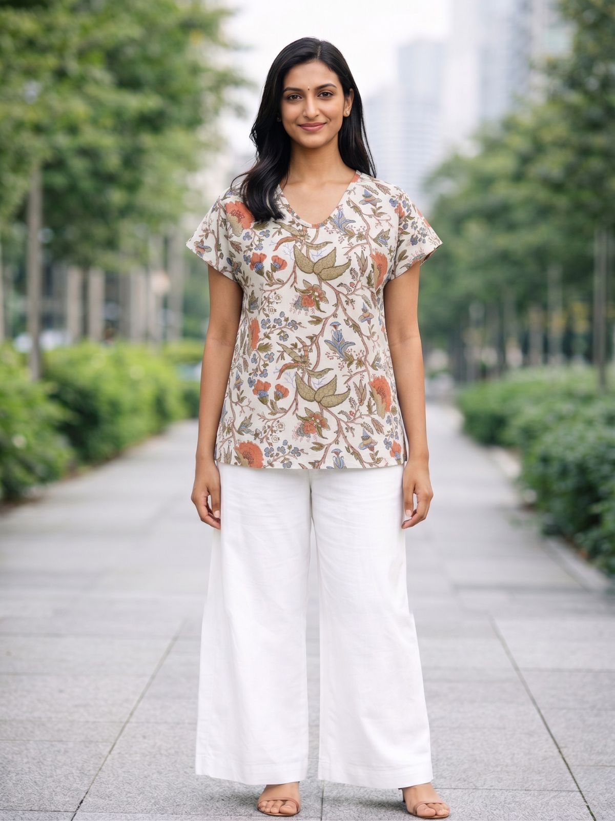 Featuring elegant prints and a relaxed fit, this top offers a perfect blend of style and comfort. The soft texture and airy feel ensure ease of movement, while the versatile design makes it ideal for casual outings, office wear, or weekend getaways.