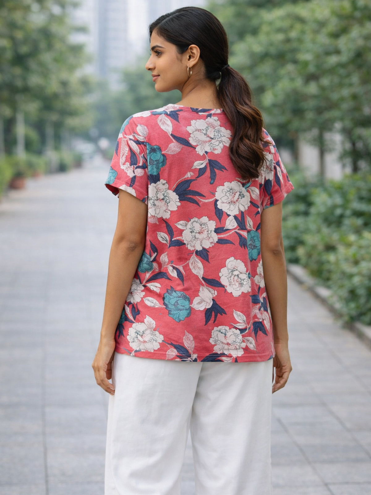 Featuring elegant prints and a relaxed fit, this top offers a perfect blend of style and comfort. The soft texture and airy feel ensure ease of movement, while the versatile design makes it ideal for casual outings, office wear, or weekend getaways.